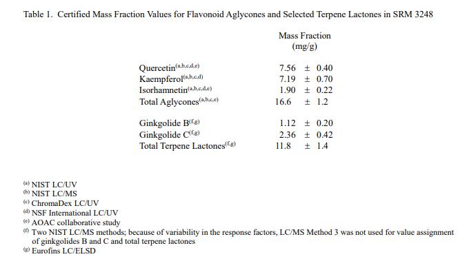 SRM 3248 銀杏片標(biāo)準(zhǔn)品 的開發(fā)是美國(guó)國(guó)家標(biāo)準(zhǔn)與技術(shù)研究院 (NIST) 之間的合作;美國(guó)國(guó)立衛(wèi)生研究院 (NIH) 膳食補(bǔ)充劑辦公室 (ODS);以及美國(guó)食品藥品監(jiān)督管理局 (FDA)、藥物評(píng)價(jià)和研究中心 (CDER)。